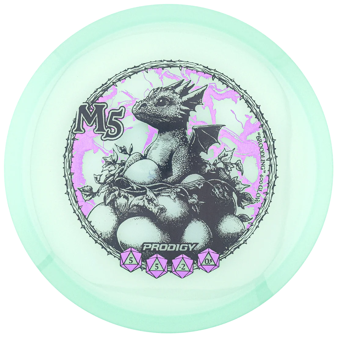 • Prodigy 400 Glow M5 er en understabil midrange med god glide, tydelig turn og en kontrollert fade – perfekt for hyzer-flip kast, lange rette drives og presise linjer med både backhand og forehand.
